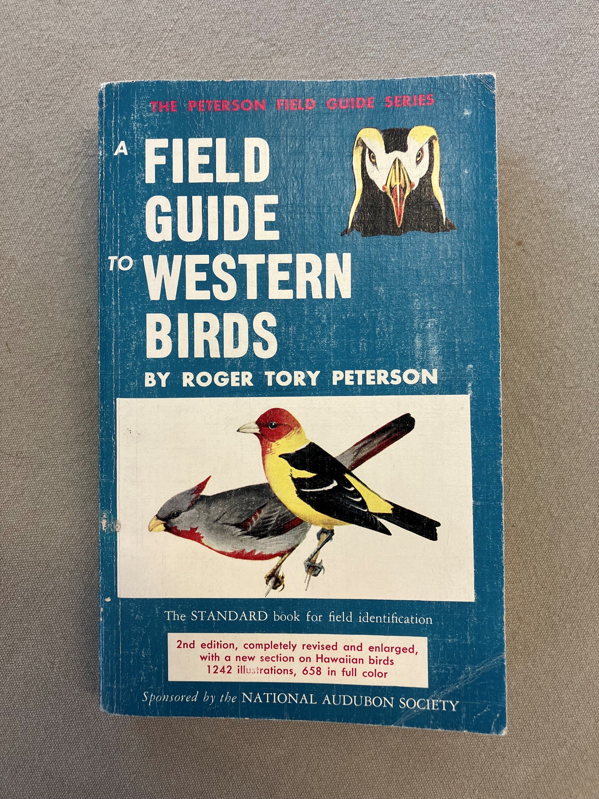 The Peterson Field Guide Series. 2nd Edition, Tenth printing, 1961. This is a compact, softcover edition. It gives the field marks of over 700 species of birds found west of the meridian, including those of western Canada and Alaska. A separate section covers birds of the Hawaiian Islands. Sixty plates -36 in full color- and numerous line drawings accompany the descriptions. Mr. Peterson's simple, convenient, and complete guide is recognized by experts and is sponsored by the National Audubon Society and the National Wildlife Federation.