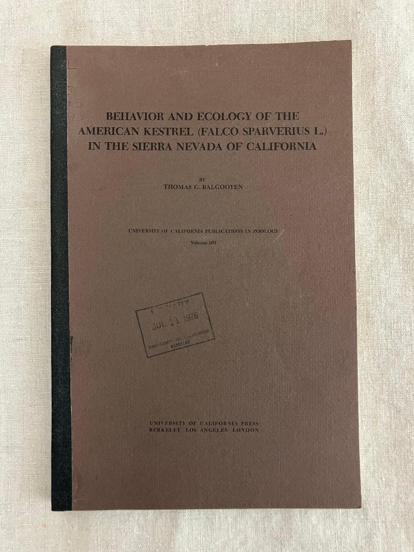 University of California Publications in Zoology, volume 103. A thorough monograph on the American Kestrel or Sparrow-Hawk of California.